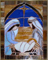 And the last of our Nativity Scene windows belongs to Mary. Her's is easy to differentiate from the other two because she put Joseph on the right rather than the left. I'm actually kidding-- what you're looking at is the back of her window so it's reversed. The big difference between the three of them appears in Mary's window because she decided to use a lighter brown for the border. There's no right or wrong in the color selection but if you want to know which one I prefer you'll be disappointed to hear that I like both versions equally (almost). lol