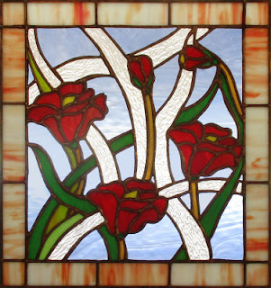 Last week I showed how removing redundant lead lines and curving others could make your windows look better. If you missed that example here it is again. The pattern on the left came from the internet. The problem I see with this design first and foremost is that there are too many lead lines running from the flower to the outside edge of the glass. Secondly, they are almost entirely straight which makes them look as though the glass was broken accidentally. The pattern on the right reduces the number of lead lines but keeps the flower intact as it was in the original pattern. Already, the pattern on the right looks better (although in all honesty I'd remove or shorten even more of those lines) but we can make it look even better by altering the flower itself.