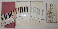 Lisa now has the first panel of her new set of Lantern Inserts pretty much ready to be soldered because it's all cut out with only 2 pieces left needing to be ground. She's already begun panel number two and is well on her way to finishing the keys on that section. One of the things we changed was the depth of the keys by reducing them by 1/3 of their originally drawn height. Also, this week I remembered not to cut off the fourth Treble Clef Panel so now you know what it looks like.