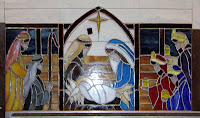 Roxane has begun cutting out the sky for the three sections of her Nativity Scene Window and will join all the sections together with the upright beams shortly.  When these are joined you'll truly see just how big this beautiful window really is.