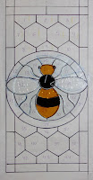 Since we are speaking of windows that are very nearly finished let's look in on Bee's LSU Plaque. She's got it all ground and foiled and ready to begin soldering. This is about 12 inches wide which means that there really isn't a lot to solder so expect to see this completed when she returns and expect to see what she plans on making next.